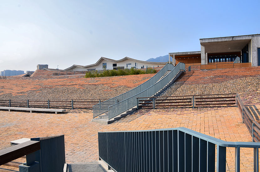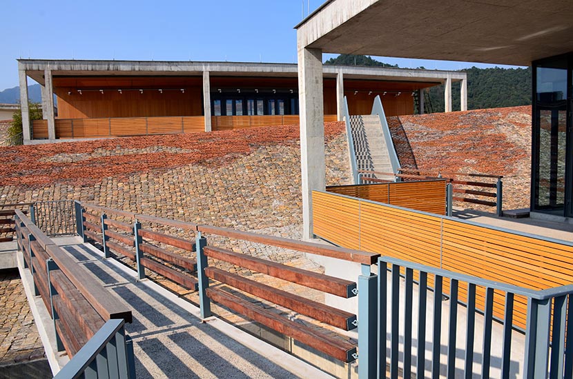 富陽公望美術(shù)館也叫“富春山館”,位于杭州市富陽區(qū),是集博物館、美術(shù)館、檔案館“三館合一”的建筑綜合體,由設(shè)計大師王澍設(shè)計。大師以蘇東坡《題西林壁》里的描繪為靈感來源,按照中國傳統(tǒng)的山水序列,建筑整體構(gòu)筑中呈現(xiàn)近山、遠山瀠洄呼應的構(gòu)筑法則和“三遠”視角,與咫尺之遙的富春山水互相輝映。美術(shù)館設(shè)計成內(nèi)山和外山,站在屋頂會看到一整片美術(shù)館都是外山,而頂上兩件小居,正是設(shè)計師心中的富春山居。