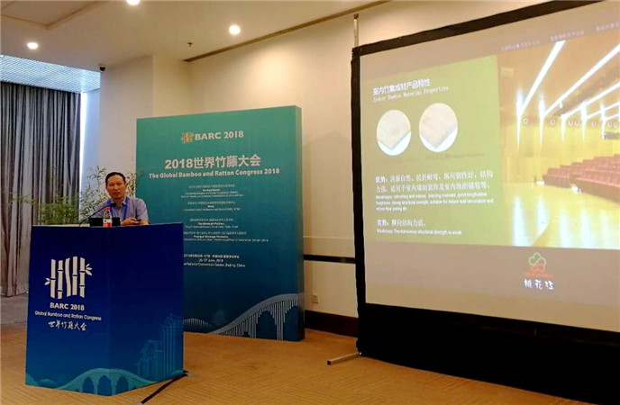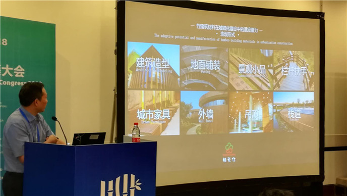 薛董以《竹建筑材料及其在城鎮(zhèn)化過程中的應用潛力》為題,圍繞中國工業(yè)化以來企業(yè)運用現(xiàn)代工藝技術(shù)及設備研發(fā)新的竹材產(chǎn)品,闡述在我國城鎮(zhèn)化建設過程中竹材新產(chǎn)品在室內(nèi)外的運用以及未來的巨大潛力,結(jié)合豐富的案例展示了中國竹材產(chǎn)品的應用成果及竹材應用的發(fā)展趨勢。薛董的演講得到了來自世界各地的科研院所、高校、企業(yè)界的100多位代表的廣泛關(guān)注。