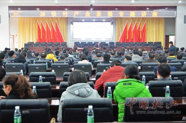 12月9日,黨政大樓附屬樓三樓會議室里,一場高規(guī)格的加快竹產(chǎn)業(yè)發(fā)展專題講座在這里舉行??h委副書記何軍田主持,縣領(lǐng)導(dǎo)唐學(xué)文、李質(zhì)彬、馬文才、陳震宇、胡國清、肖立新、張亮榮、劉武出席。副處級以上干部,縣直單位、鄉(xiāng)鎮(zhèn)負責人,林業(yè)系統(tǒng)工作者共400余人濟濟一堂,認真聆聽了中國工程院院士、中國竹子加工利用首席科學(xué)家、南京林業(yè)大學(xué)教授張齊生和國家林業(yè)局竹子研發(fā)中心科研處處長、竹筍專家、高級工程師吳良如精彩而豐富的竹產(chǎn)業(yè)講課。